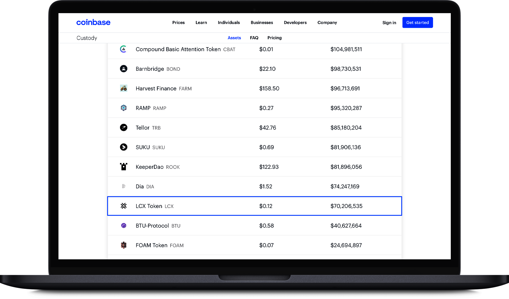 You can now find LCX Token in their list of all supported assets at Coinbase Custody (just search for “LCX”). In addition you can find LCX Token listed in the legal FAQ of Coinbase Custody.