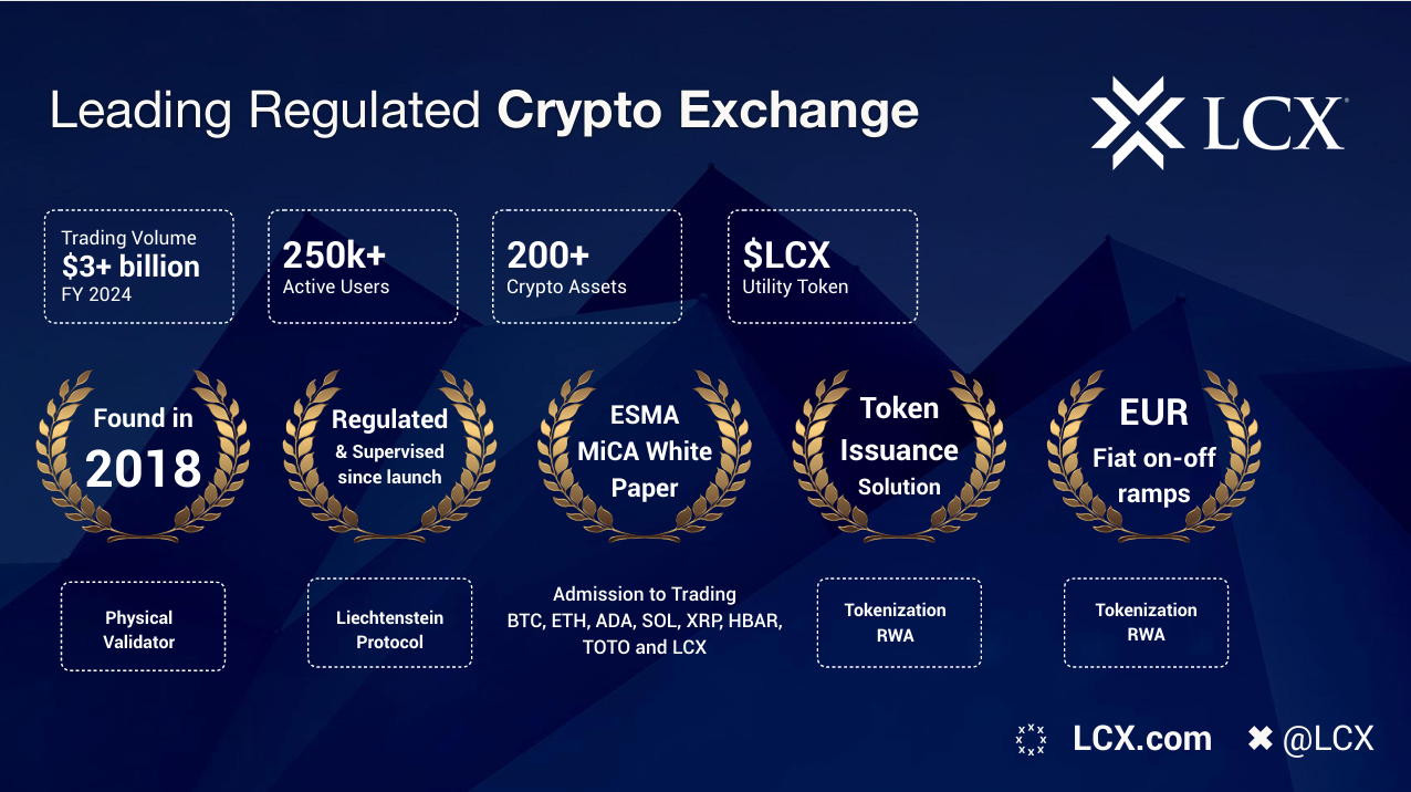 LCX is not just building an exchange. It is laying the foundation for a trillion-dollar tokenized capital market. With over $3B in trading volume in FY 2024, more than 250,000 active users, and a solid regulatory base in Liechtenstein, LCX is prepared to lead the shift toward compliant, scalable digital finance infrastructure.