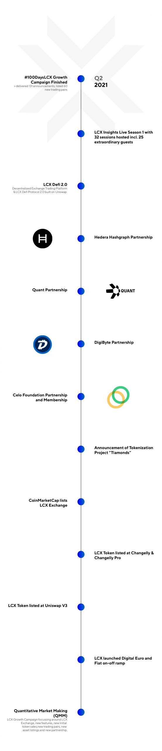 The second quarter of 2021 witnessed the completion of the #100DaysLCX Growth Campaign where we delivered 131 announcements and listed 60 new trading pairs. You can read all the highlights of our #100daysLCX growth Campaign here. There is so much going on with LCX, follow us on twitter @LCX or join our telegram community to be posted about these announcements regularly.