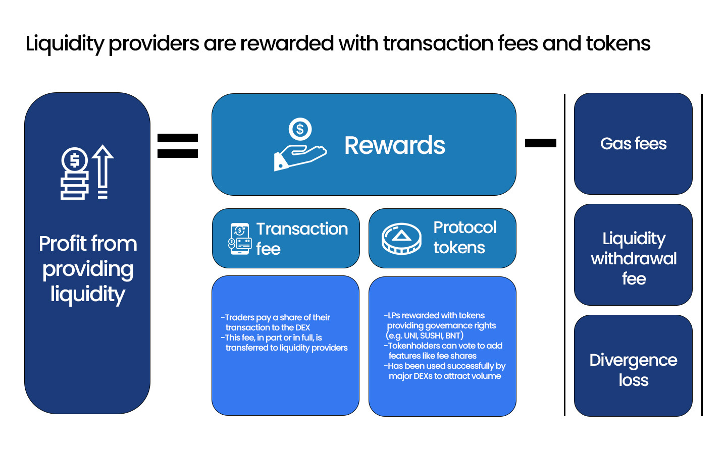 Within DeFi, Liquidity Provider tokens address the issue of locked cryptocurrency liquidity. In other words, prior to the introduction of LP tokens, crypto assets were sealed or staked for specific mechanisms (including governance) and were inaccessible. This resulted in diminished liquidity and activity in the cryptocurrency ecosystem. With the adoption of LP tokens, it is possible to create larger pools of liquidity for assets contributed by users, enhance the liquidity of the market, and financially incentivize LPs in exchange for the service they provide through the issuance of LP Tokens.